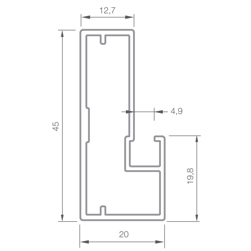 Alu. raam 45 x 20 mm,2,75m A12 lai, matt must