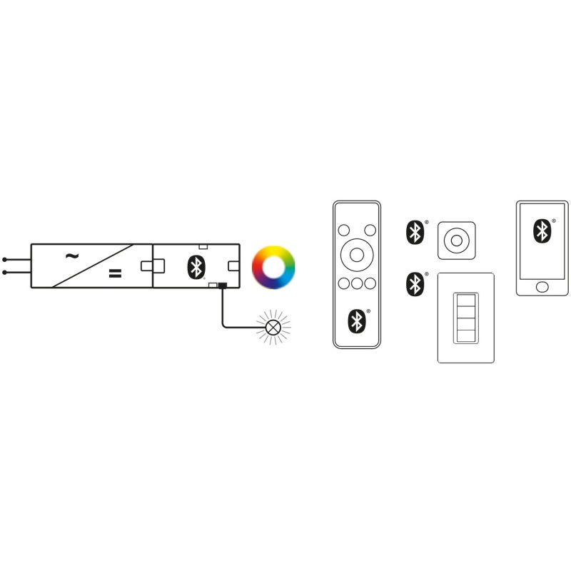 Häfele Connect Mesh Bluetooth® juhtplokk on mõeldud RGB ehk värviliste LED valgustite sisse/välja lülitamiseks, hämardamiseks vahemikus 0 - 100%, värvitooni muutmiseks.