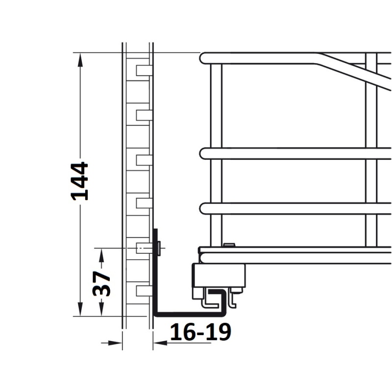 Häfele väljatõmmatav kapi sisekorv ↔600 mm, vaikseltsulguv (kroom)
