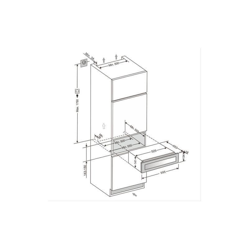 Sisesügavusega min 555 mm:
