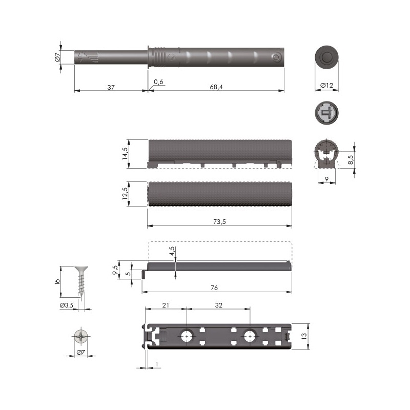 K PUSH TECH TEXTURE on täielikult uuendatud tõukur ilma käepidemeta kapiukse avamiseks. Ka selle kapi korpuse külge kinnitamise ADAPTER on uuenenud.