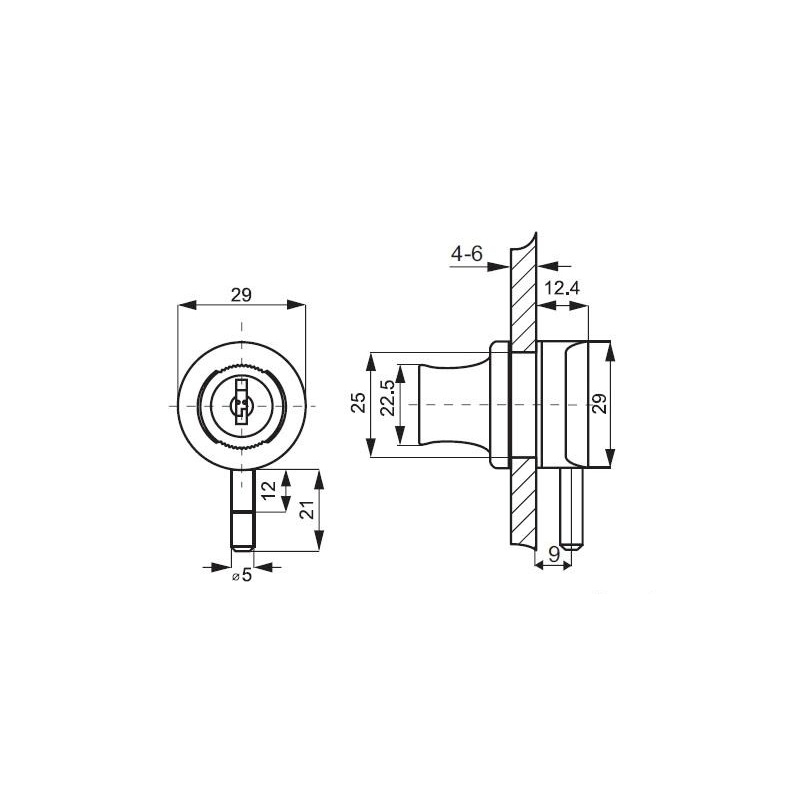 Kasutamine: lukk lukustub keerates võtit 180˚. Klaasile paksusega 4 - 6 mm ja avasse ø 25 mm