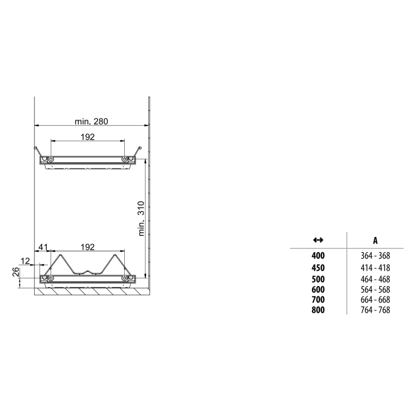 - Laius: 764/768 mm. Sobib kappidele, mille küljepaneeli paksus on kas 16 mm või 18 mm