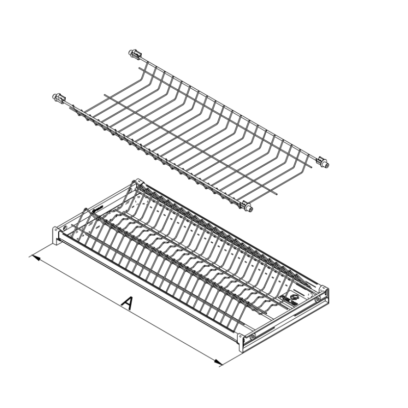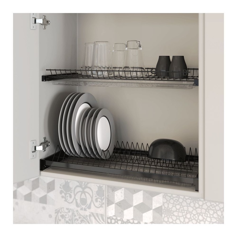 Kahetasandiline nõuderest kasutamiseks ülemistes kappides. Kasutamiseks tasside või taldrikute jaoks. Kaasas kaks alusvanni.