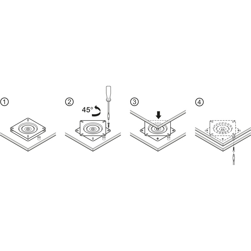 Tugev ja kompaktne 360° pöörlev metallist pöördalus, sobib teleritele, Hi-Fi seadmetele, kontorilahendustele ja mööblile. Kandevõime kuni 150 kg.