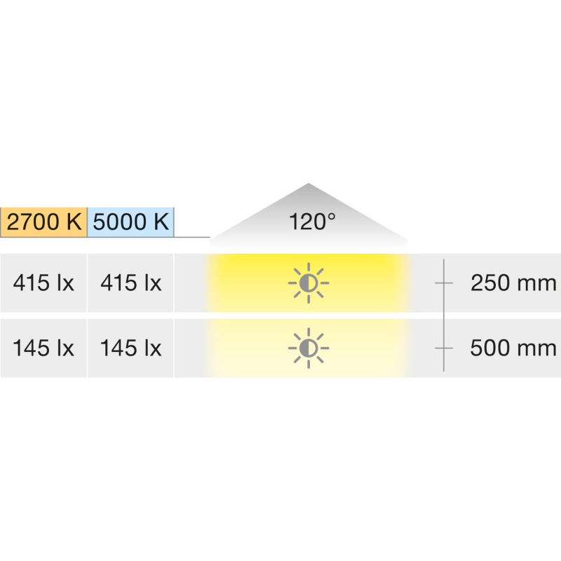 Tänu multivalgele funktsioonile saab nupule vajutades valida sobiva valgusvärvi (2700/3000/4000/5000 K) ning valgusti jätab viimase seadistuse meelde.