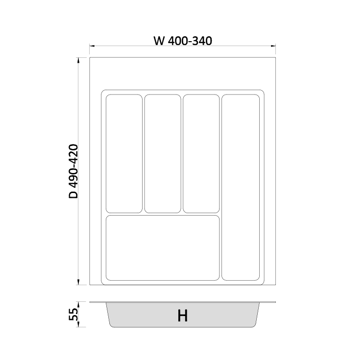 Sahtlitele liugurite sügavusega 450 mm ja 500 mm;