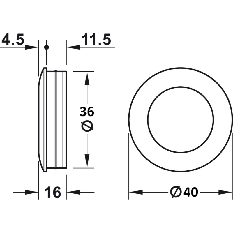 Süvistatav käepide Ø40 mm (matt must)