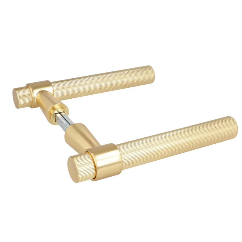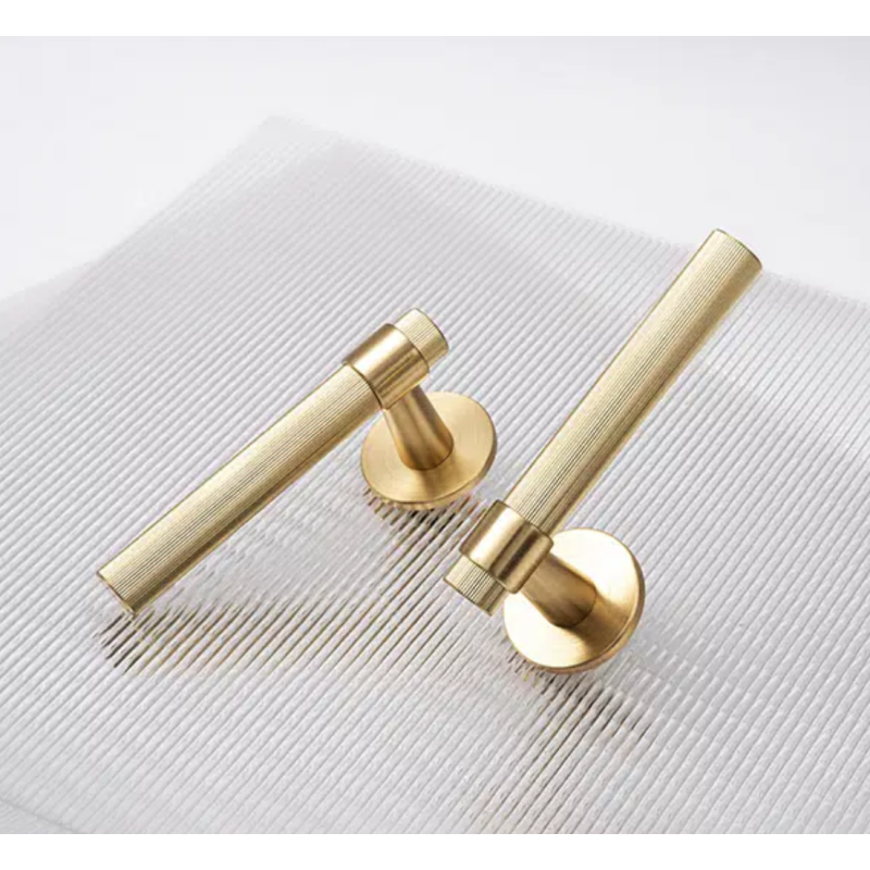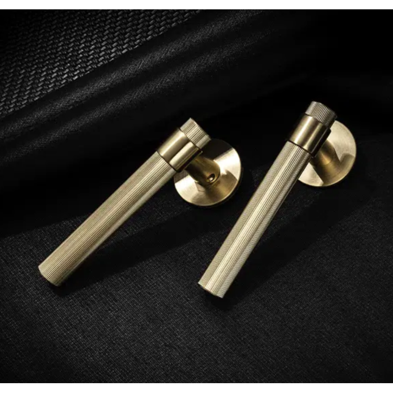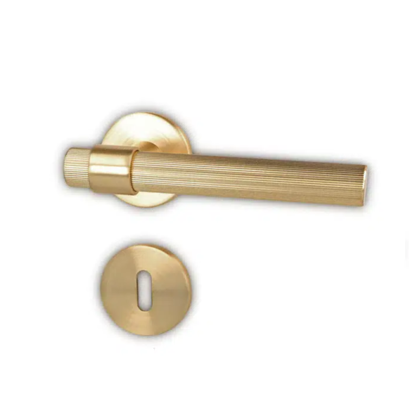 Modernse ja minimalistliku disainiga uksekäepide “Justa” lihvitud brass viimistluses. Komplekt sisaldab rosette, võtmeava katteid ning kõiki paigaldusvahendeid. Sobib 38–50 mm paksustele ustele.