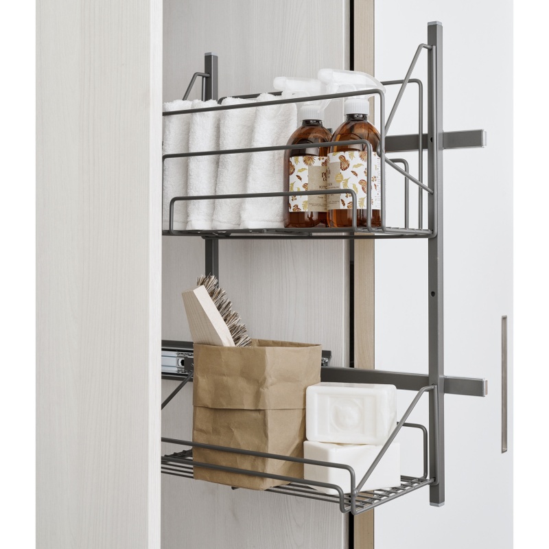 VIIVI on väljatõmmatav puhastustarvikute hoidik: Paigalda puhastuskappi, pesuruumi, esikusse või kuhu iganes vajad lisapinda igapäevaste tarvikute ladustamiseks.